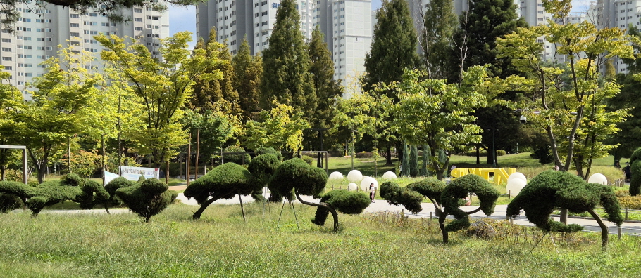 효원공원은 도심 속에 직사각형으로 효를 상징하는 각종 기념물이 있지만 산책하기 좋은 곳으로 뉴욕 센트럴 파크에서 거닐던 기분으로 힐링 했다.