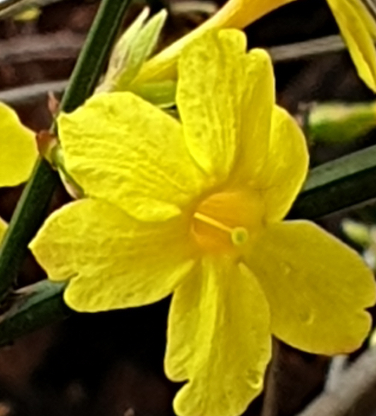 ● 개나리 꽃잎 끝은 4개으로 갈라졌고, 영춘화는 5~6개(모두 통꽃)