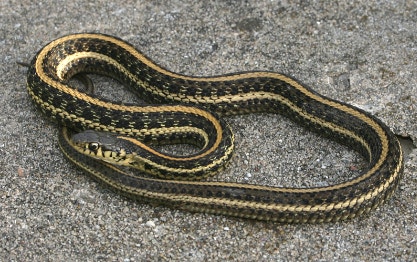 가터뱀: 북미에 흔히 서식하며 줄무늬가 있는 뱀